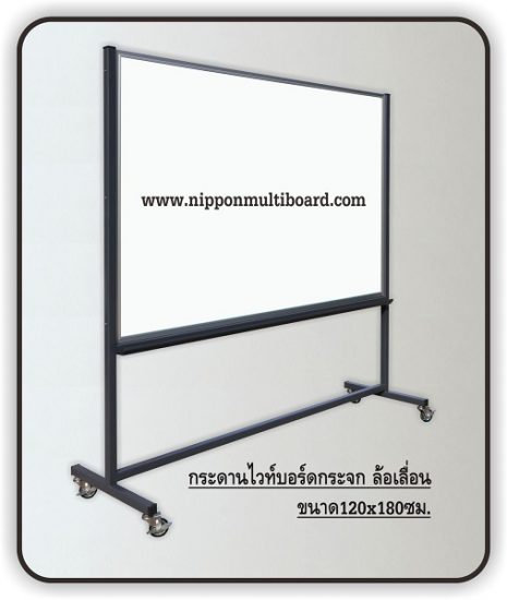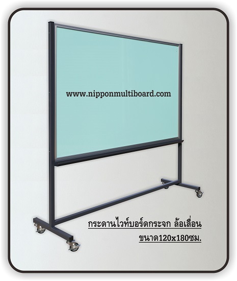 กระดานไวท์บอร์ดกระจกล้อเลื่อน มีทั้งกระจกใส(มองเห็นทะลุด้านหลัง) ขาวใส และเขียวใส